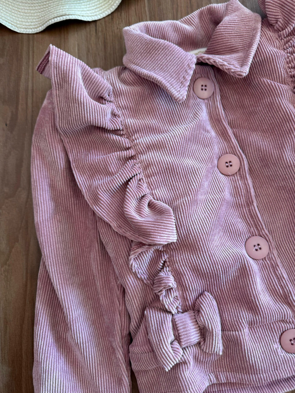 Jaqueta Infantil em Cotelê com Forro em Teddy Rosê Yoyo