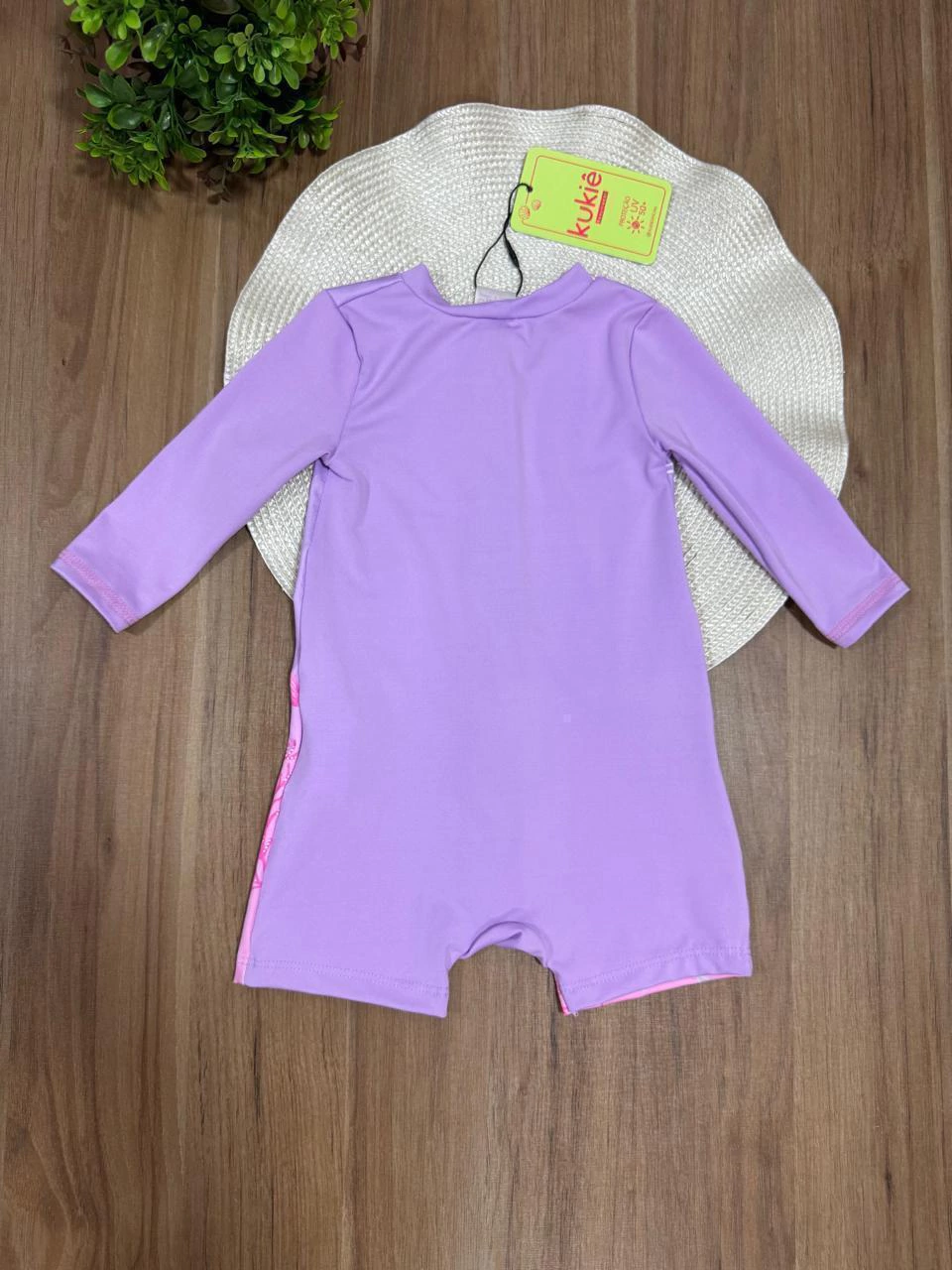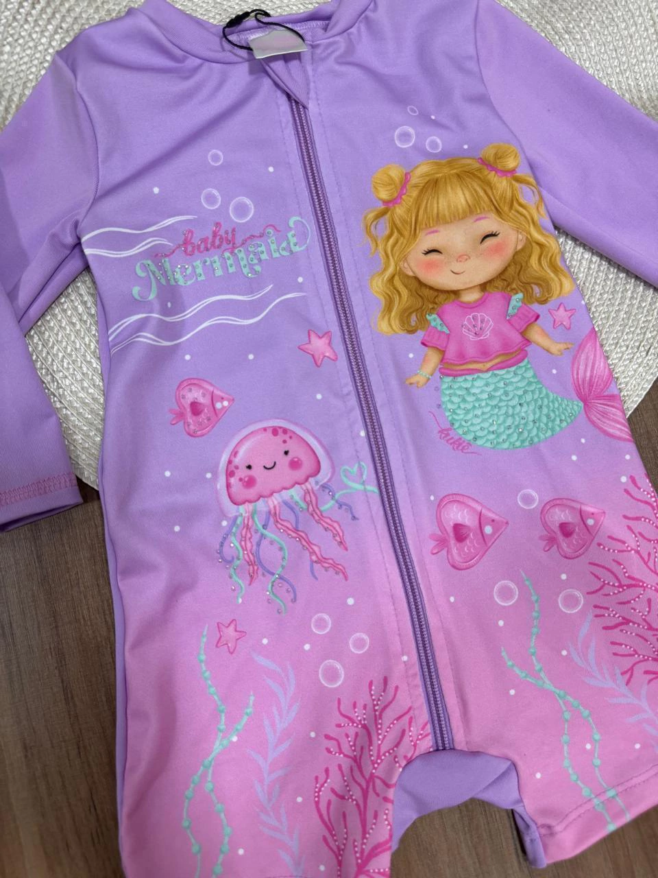 Macacão Infantil em Malha com Proteção Solar Lilás Sereia Fundo do Mar Kukiê – Conforto e Estilo para os Dias de Praia e Piscina