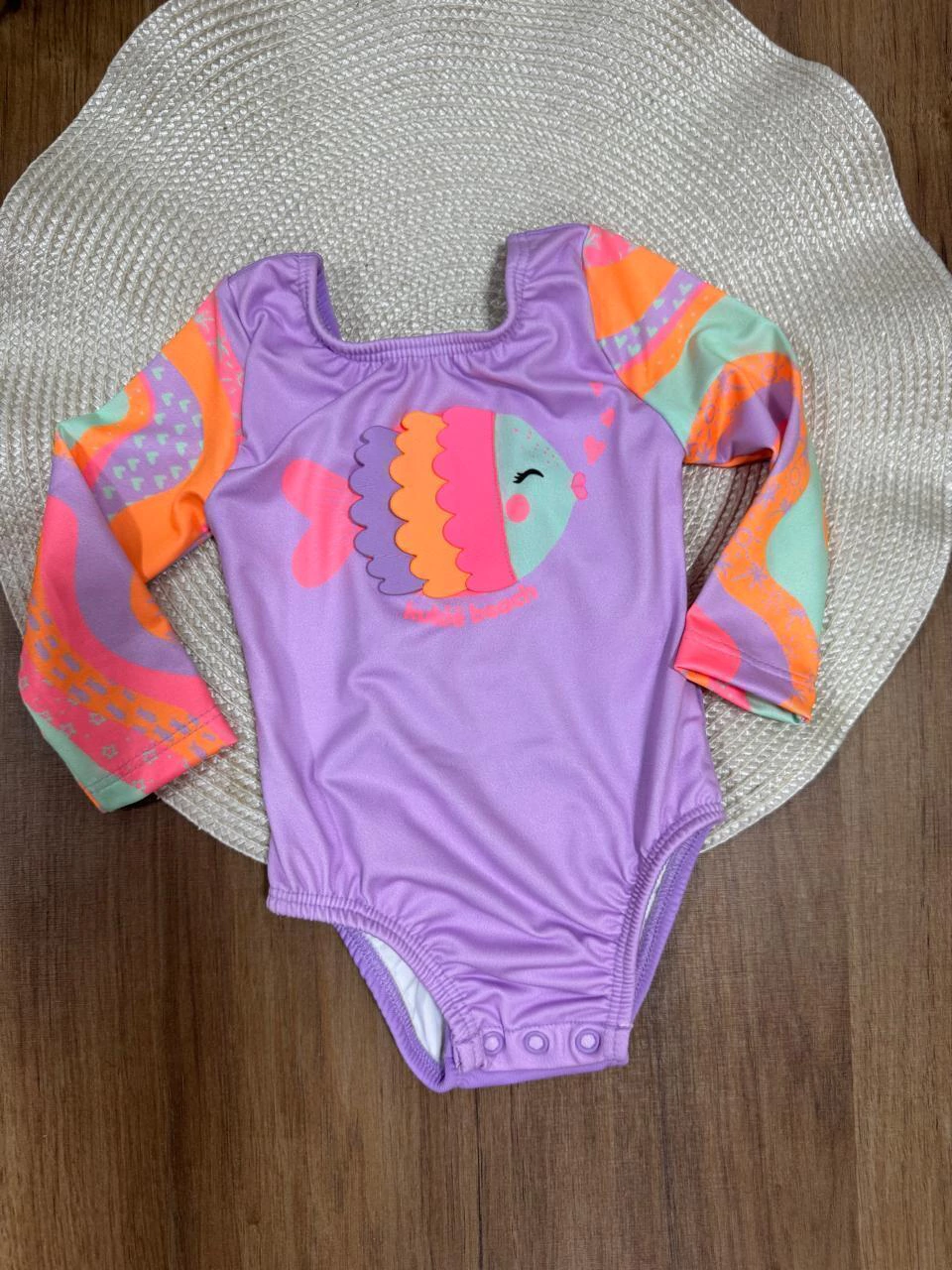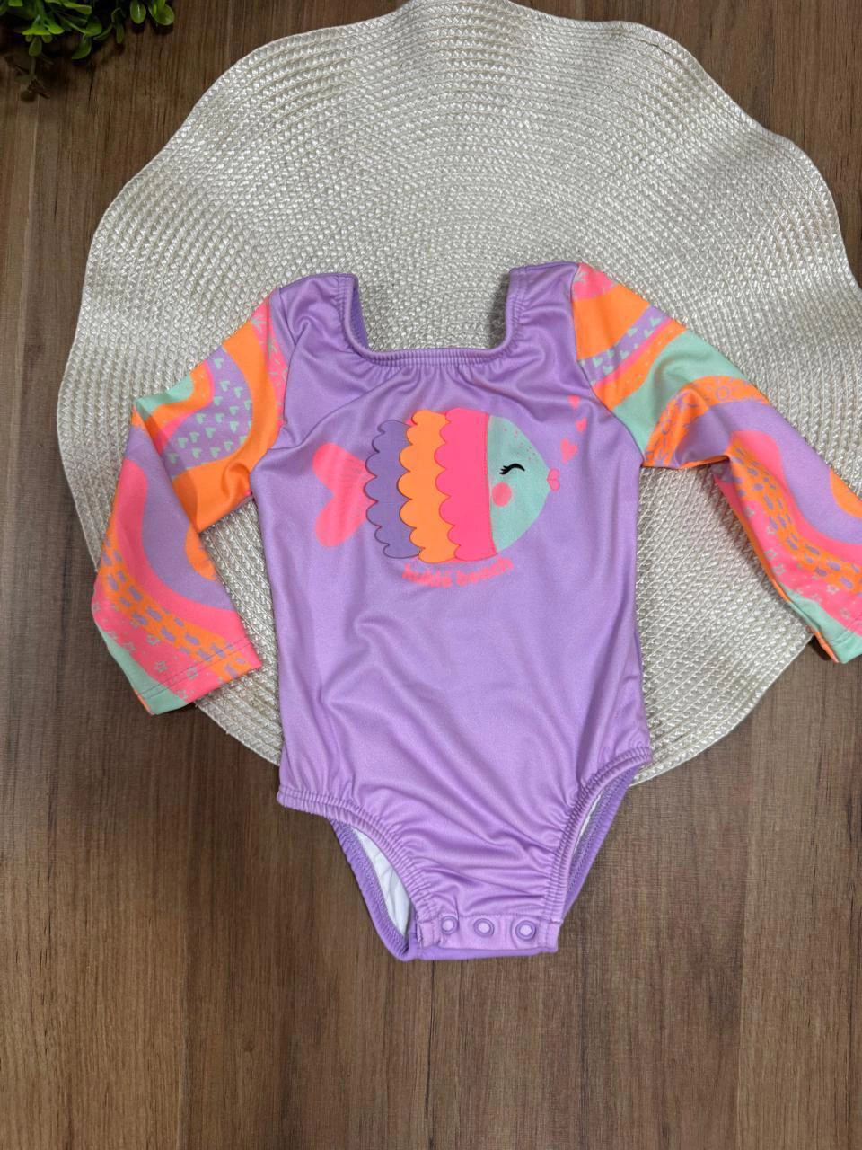 Maiô Infantil em Malha com Proteção UV50+ Peixinho Lilás Kukiê – Elegância e Segurança para os Momentos de Praia e Piscina