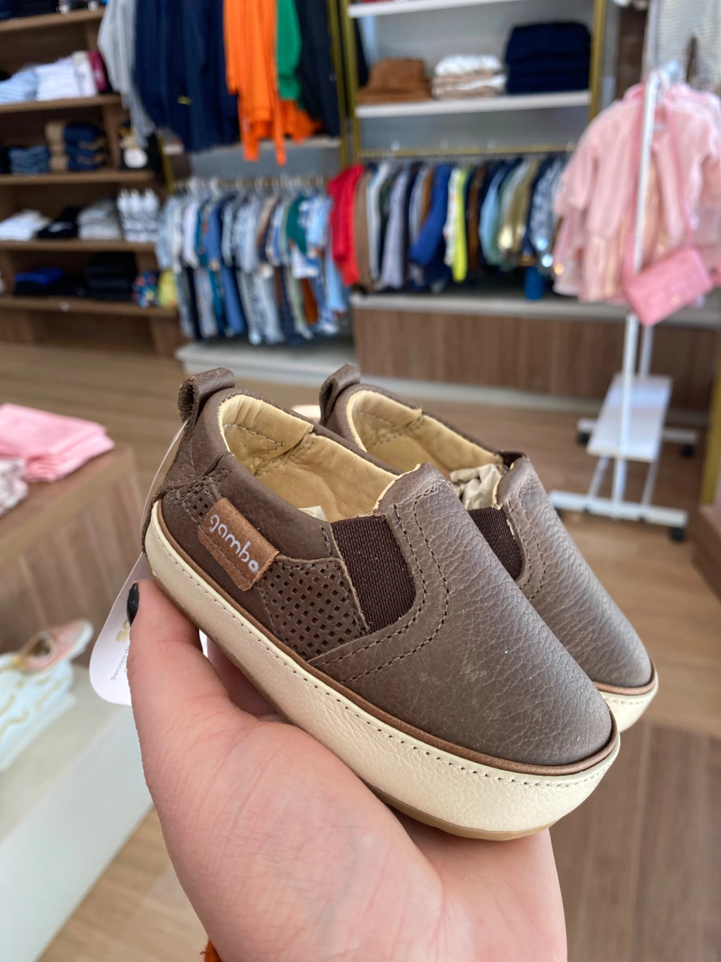 Tênis Marca Gambo em couro nobre cor chocolate amargo.