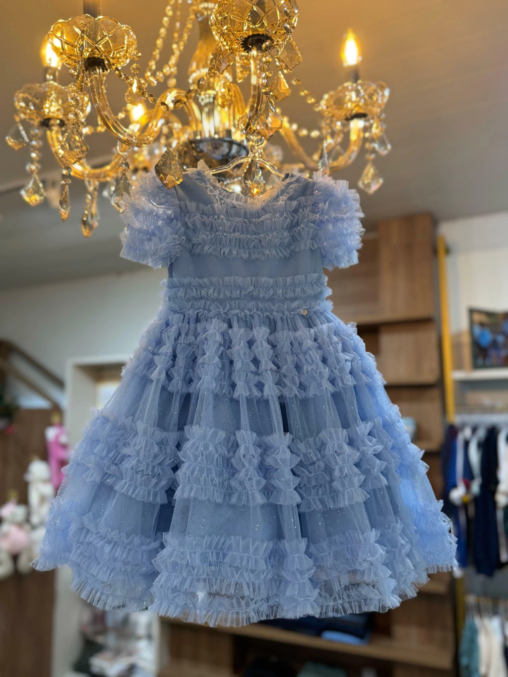 Na Loja Clube Melina, a satisfação do cliente é nossa prioridade! Com uma política de trocas que respeita a legislação vigente, garantimos segurança nas suas compras. Faça da Vestido Infantil em Tule Brilhoso com Babados Azul Petit Cherie a peça central do guarda-roupa da sua pequena, unindo elegância, conforto e um toque de magia!